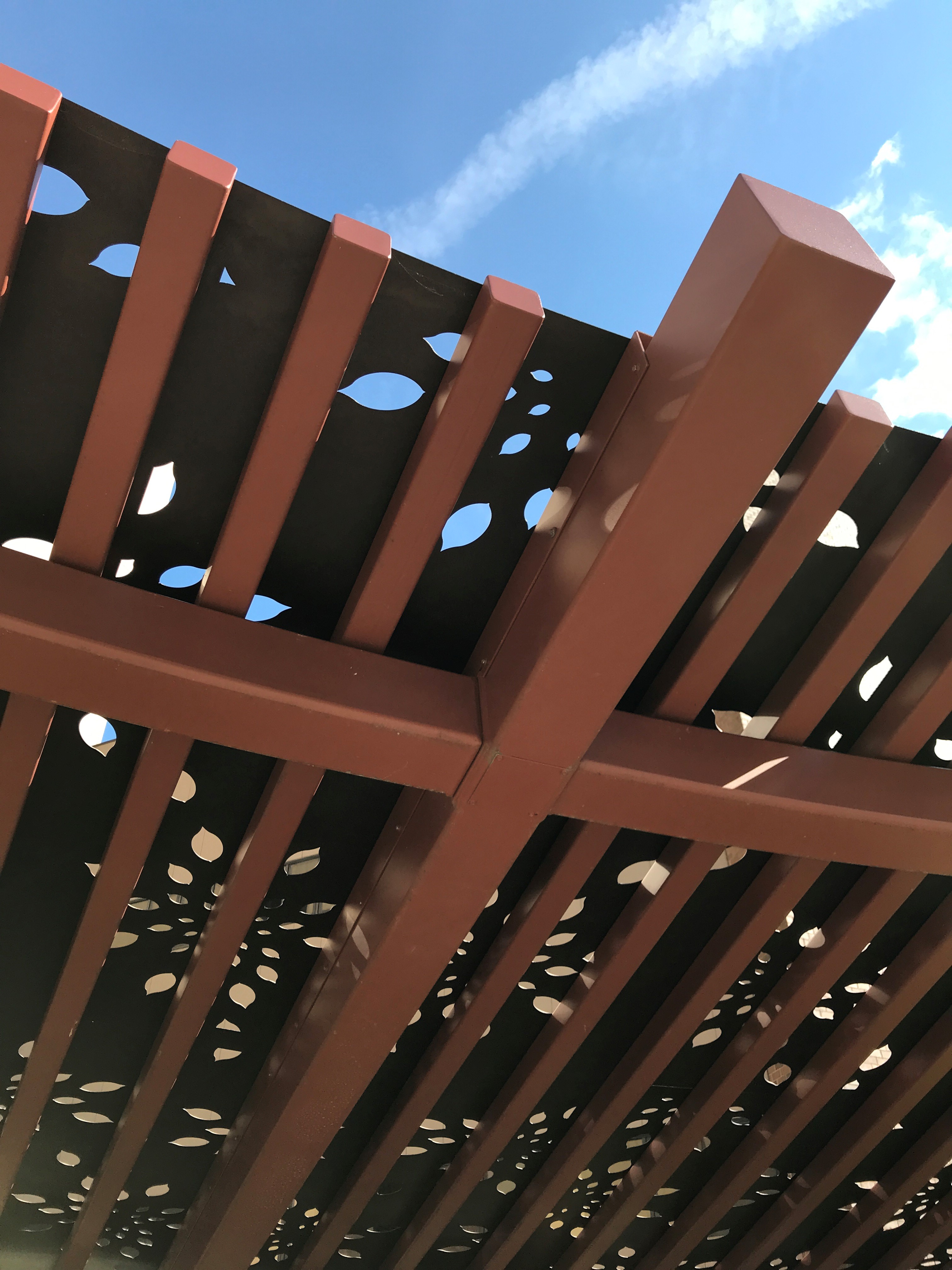 The multi-level, exquisitely-detailed sculptural healing garden includes a series of therapeutic strolling paths, a large gathering area for public interaction and small events, intimate garden nooks for those seeking solitude, a horticulture therapy area, two custom shade structures, a wide variety of moveable tables and chairs, interactive garden art and a Little Free Library.